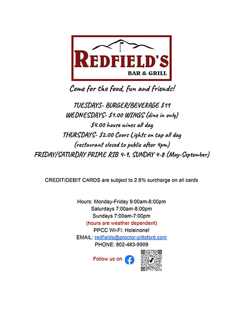 Redfield's Bar & Grill Introduces it's New 2026 Menu