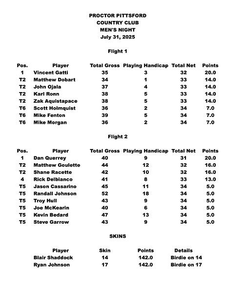 The latest Proctor Pittsford Country Club tournament scores are posted here.