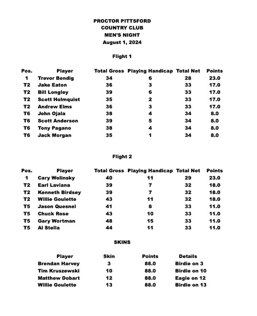 Men's Night - 8/1/24 - Results