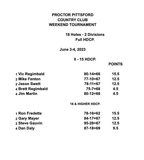 The latest Proctor Pittsford Country Club tournament scores are posted here.