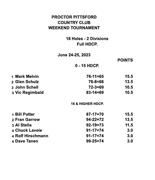 The latest Proctor Pittsford Country Club tournament scores are posted here.