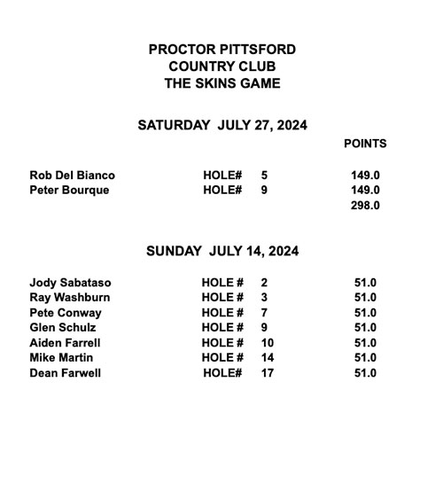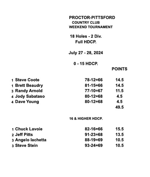 The latest Proctor Pittsford Country Club tournament scores are posted here.