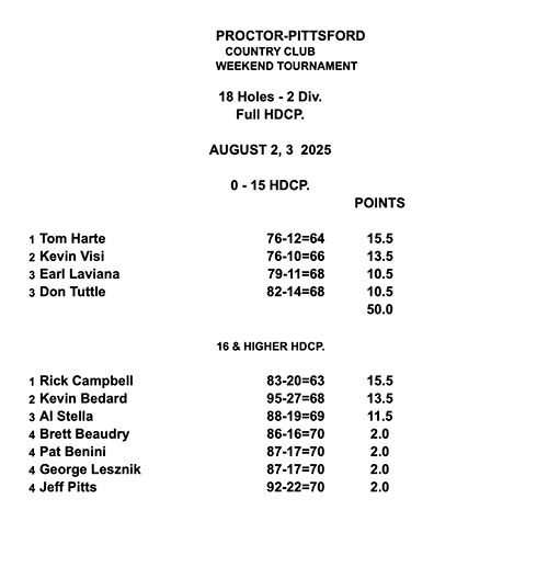 The latest Proctor Pittsford Country Club tournament scores are posted here.